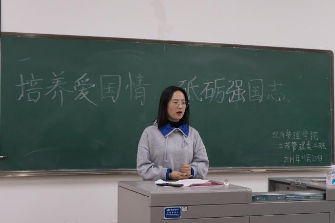 活动初始,各班团支书向同学们细致讲解了新时代爱国主义教育的总体要求和基本内容,以及深入开展“不忘初心,牢记使命”主题教育的重要性,随后主讲人介绍了共产党成立以来无畏献身的烈士们的英雄事迹,莘莘学子不仅对那些为中华民族谋复兴的英雄感到敬佩,作为华夏儿女的归属感和自豪感也深深扎根于心底。讲罢,同学们踊跃分享了参与“培养爱国情,砥砺强国志”主题团日活动的感悟。最后,同学们观看了爱国主义纪录片,对于爱国主义教育的了解进一步深入。