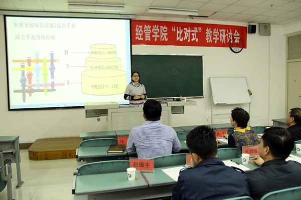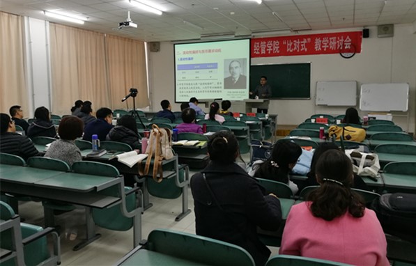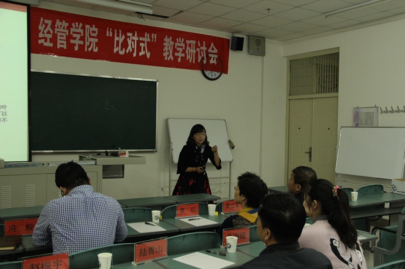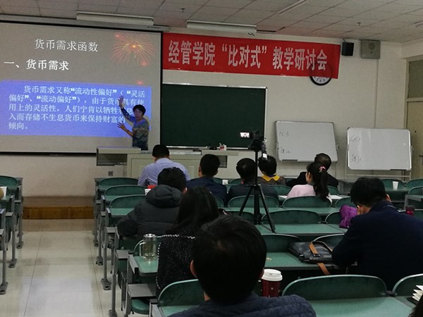 于11月16日下午成功举办了“比对式”教学研讨会的第一期。本期教学研讨会的课程选定为《市场营销》和《宏观经济学》,授课教师分别为马晓云、张淑萍、张小盟和仇娟东,邀请冯蛟副院长、黄立军副院长、陆青山教授、袁红教授、赵振宇副教授等9位教师担任本期活动的专家评委,冯蛟副院长主持此次研讨会,全院教师积极观摩学习。